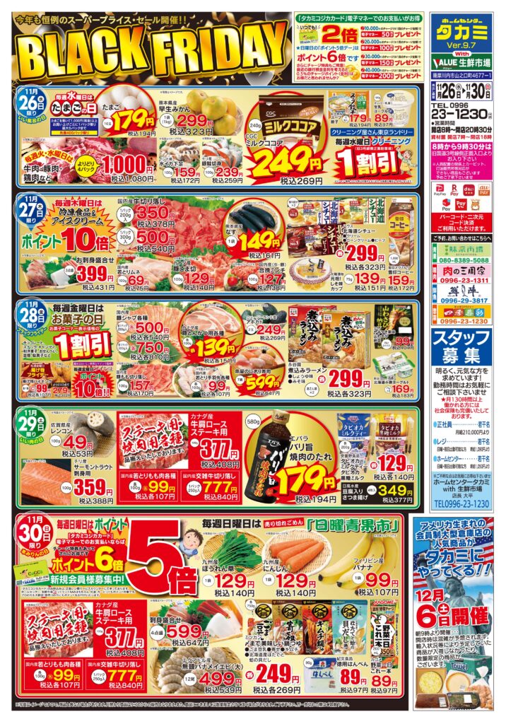 また、12月6日(土)は朝9時より今年最後の「アメリカ生まれの会員制大型倉庫店セール」を開催いたします。